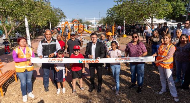 Juaréz.- Después de más de dos décadas de rezago, la colonia Monte Verde celebra la renovación total de su plaza pública, ahora convertida en el séptimo Espacio de Unidad del municipio.