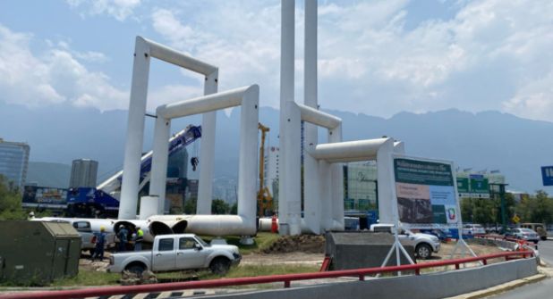 Monterrey.- A una semana del banderazo de inicio, el gobierno municipal de San Pedro Garza García avanza en la reubicación del monumento “La Alianza”, también conocido como “Los Tubos de San Pedro”, ubicado en el crucero de Gómez Morín, en Calzada del Valle y Vasconcelos.