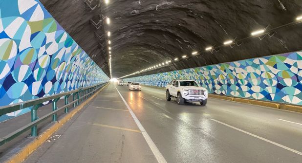 Este corredor vial, que conecta a los municipios de Monterrey y San Pedro Garza García, ahora exhibe una intervención artística monumental que abarca 8 mil 840 metros cuadrados, transformando su arquitectura urbana en una experiencia visual inmersiva.