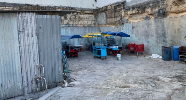 Se trata de uno de los cinco espacios denunciados recientemente, donde se ha documentado que los comerciantes guardan carritos con comida y utensilios de cocina en la intemperie, lo que incrementa el riesgo de que los productos se descompongan por el calor, se mojen con la lluvia o queden expuestos a insectos y roedores.