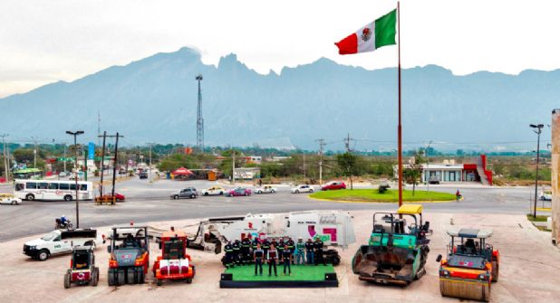 García.- El alcalde de García, Manuel Guerra Cavazos, hizo historia este martes al presentar oficialmente el nuevo “Tren de Pavimentación”, un conjunto de maquinaria adquirida directamente por el municipio y que permitirá atender de forma permanente el problema de baches y deterioro en las calles principales de la ciudad.