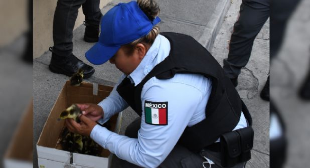 Fue la oficial Wendy Martínez Rojas, asignada a la vigilancia turística del primer cuadro de Monterrey, quien notó que los patitos caminaban desorientados y estaban a punto de cruzar la avenida, exponiéndose al riesgo de ser atropellados.