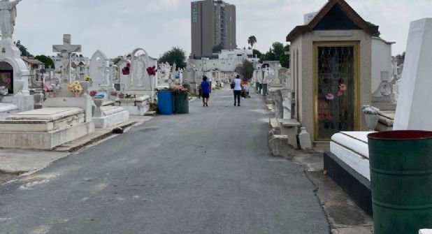 Alrededor de las 10:30 horas del domingo se pudo notar que eran pocas las personas que se encontraban visitando a sus familiares en el Panteón Dolores, ubicado en las calles Aramberri y 20 de noviembre, en la colonia Centro, lugar que normalmente cada 10 de mayo se llena.