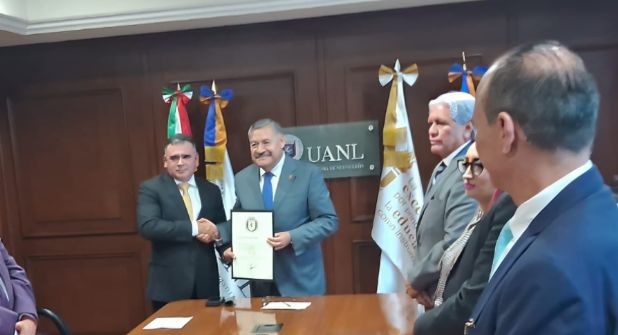Mario Alberto Garza recibió su nombramiento de secretario general durante una reunión encabezada por el rector Santos Guzmán en el octavo piso de la Torre de Rectoría de la UANL.