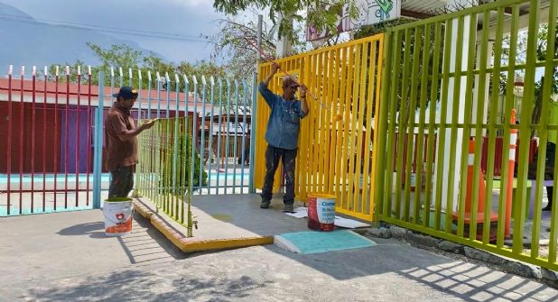 Santa Catarina.- El Gobierno de Santa Catarina lleva a cabo trabajos de mantenimiento en diversos planteles educativos aprovechando el receso escolar.