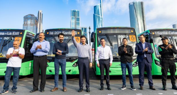 Monterrey.- Como parte del plan de renovación del transporte público, el gobernador de Nuevo León, Samuel García entregó este jueves 40 nuevos camiones sustentables que operarán en la Ruta 203, la cual conecta los municipios de Monterrey, San Pedro, Santa Catarina y García.