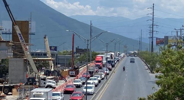 Monterrey.- Las obras de la Línea 6 del Metro generaron la jornada de este viernes un intenso congestionamiento vial en la Avenida Miguel Alemán, ante el cierre de la lateral de Ruíz Cortines hasta la calle Profesora María Valdez ante la construcción de la estación Ruiz Cortines.
