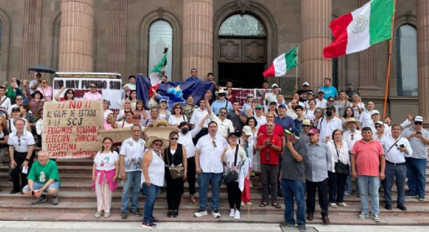 Monterrey.- En el marco de una jornada nacional de protestas convocada en más de 50 ciudades del país, colectivos ciudadanos se manifestaron este domingo en la Explanada de los Héroes para exigir la nulidad de la elección judicial celebrada el pasado 2 de junio, a la que calificaron como “ilegítima”.