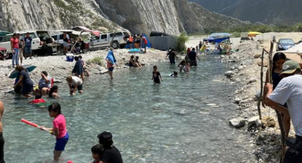 Preparados con toldos, ropa ligera, hidratación y hasta los asadores para preparar carne asada, es como las familias se reunieron en el cauce ubicado a la altura de Los Nogales para refrescarse en la corriente de agua.