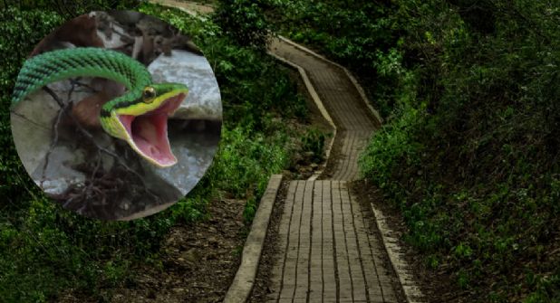 Monterrey. – Un biólogo de Monterrey captó con su cámara fotográfica la presencia de una singular especie de serpiente color verde en el Parque Natural La Estanzuela; las imágenes rápidamente llamaron la atención de usuarias y usuarios en redes sociales, quienes quedaron fascinados con las características del animal.