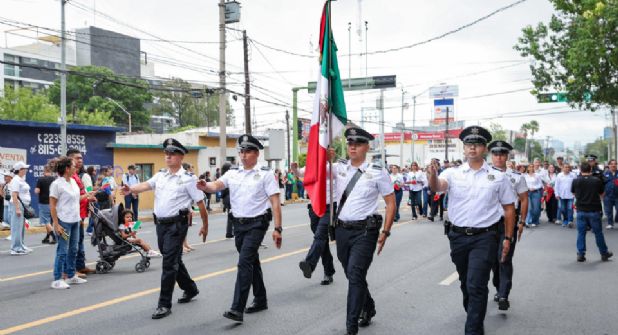 El desfile contó con la participación de 38 contingentes, integrados por más de 3 mil personas pertenecientes a corporaciones de seguridad y auxilio, como la Secretaría de Seguridad Pública municipal.