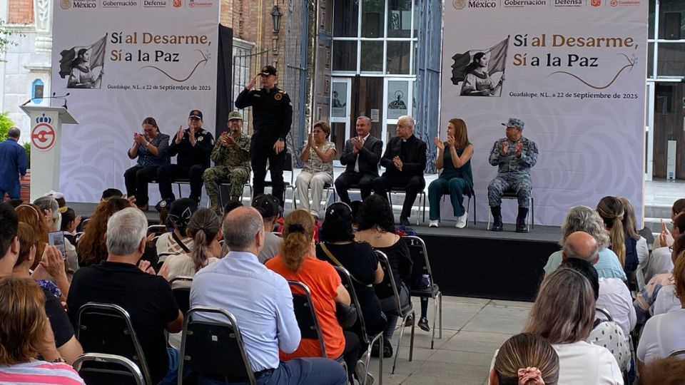Guadalupe.- En la Plaza Principal de Guadalupe, frente a la Basílica, autoridades de los tres niveles de gobierno dieron inicio en el estado al programa Sí al Desarme, Sí a la Paz, mediante el cual se busca retirar de circulación armas de fuego, municiones e incluso granadas, a cambio de incentivos en efectivo.