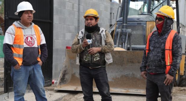 Desde temprana hora llegan a la obra con el equipo necesario para cumplir con su labor, aun cuando las temperaturas son poco favorables.