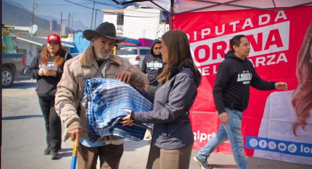 Monterrey.- La diputada local Lorena de la Garza realizó recorridos en las colonias Canteras y Revolución Proletaria, donde realizó entrega de cobertores a los habitantes ante las bajas temperaturas y también dialogó directamente con los vecinos.