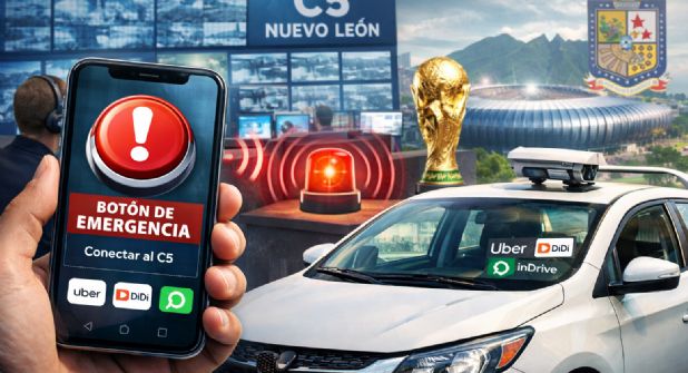 Monterrey.- Con miras a la celebración del Mundial de la FIFA y ante la expectativa de una alta afluencia de visitantes nacionales e internacionales, el Gobierno de Nuevo León ha intensificado las acciones preventivas en materia de seguridad, particularmente en el uso de taxis de aplicación, a través de la incorporación de botones de emergencia conectados de manera directa al sistema estatal de vigilancia del C5.