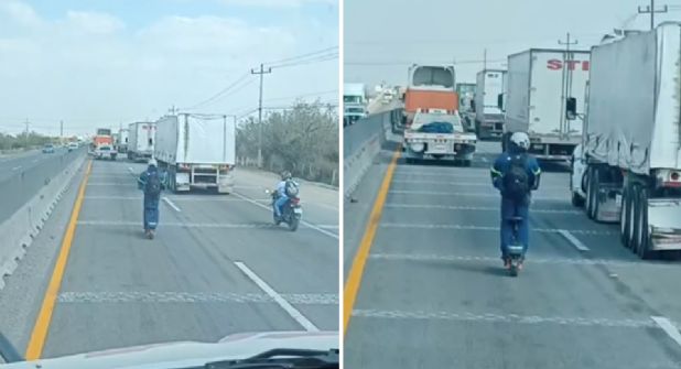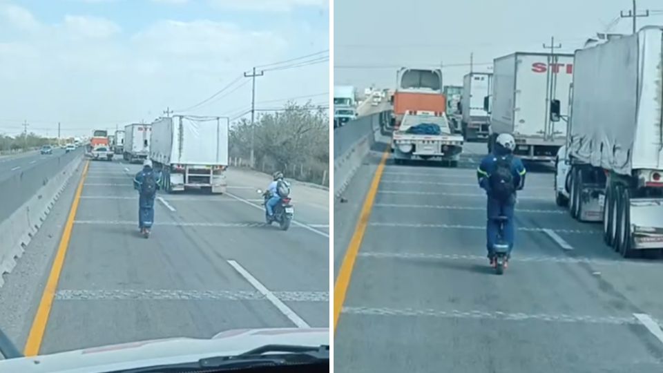 Monterrey. – Automovilistas que circulaban sobre el Libramiento Noreste captaron a una persona viajando en un scooter eléctrico.