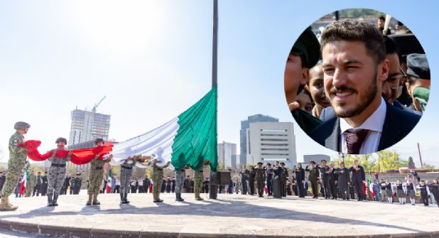 Monterrey. - Al encabezar la ceremonia conmemorativa del Día de la Bandera en la Explanada de los Héroes, el gobernador de Nuevo León, Samuel García, afirmó que los retos actuales del país exigen honrar el lábaro patrio con resultados concretos que fortalezcan a la entidad y estén a la altura de su historia.