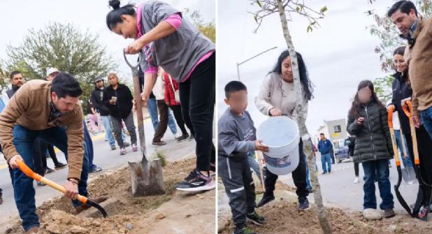 El evento de arranque tuvo lugar en la colonia Bosques de Castilla, donde el emecista, acompañado por la presidenta del DIF municipal, Nelly Garza, trabajó de la mano con los residentes para plantar los primeros ejemplares en los frentes de sus hogares.