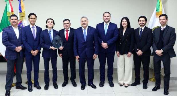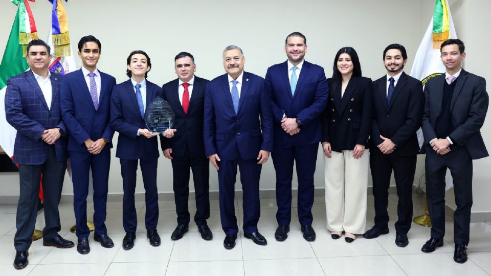 Acompañados de sus asesores, Rodrigo Medrano y Genaro Bermejo, los universitarios mostraron la presea de primer lugar al rector de la UANL Santos Guzmán López; el secretario general de la UANL, Mario Alberto Garza Castillo, y el coordinador de la Facultad de Derecho y Criminología, David Emmanuel Castillo Martínez.