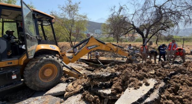 Al sitio llegaron elementos de Protección Civil municipal y una grúa para remolcar el vehículo, después arribaron las cuadrillas de Agua y Drenaje de Monterrey para comenzar los trabajos de reparación.