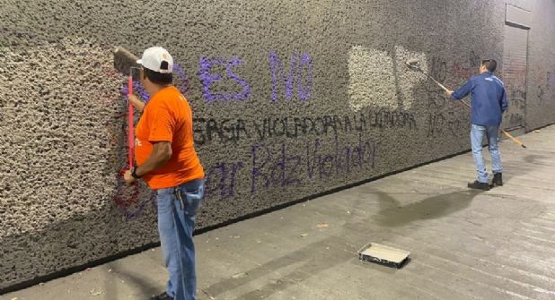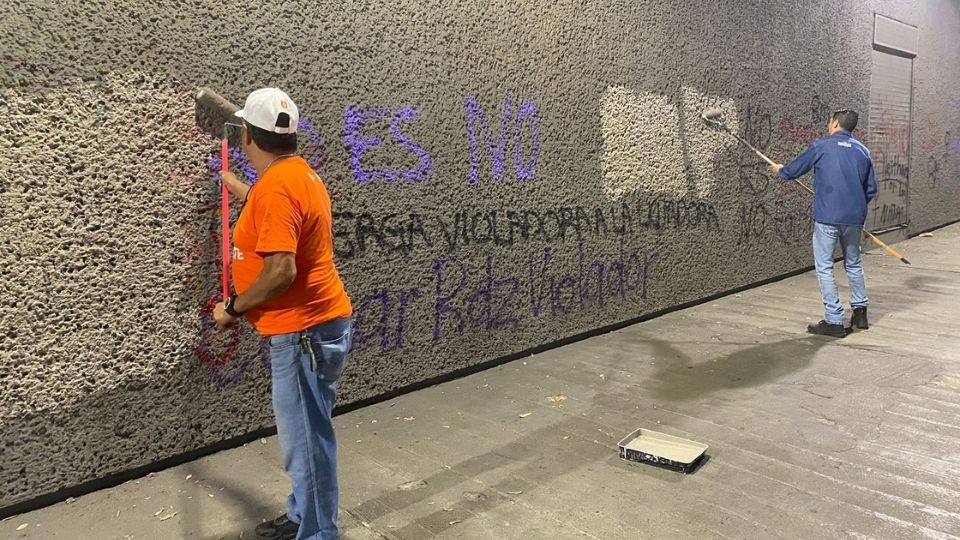 Durante un recorrido realizado por el equipo de ABC Noticias en el primer cuadro de la ciudad se pudo observar que gran parte de los grafitis realizados por manifestantes feministas ya habían sido cubiertos con pintura o limpiados por los propios trabajadores de los establecimientos afectados.
