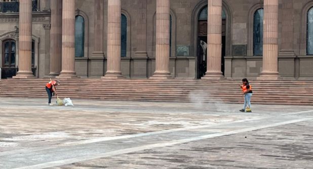Monterrey.- Más de ocho horas tuvieron que pasar para que comenzaran los trabajos de limpieza y reparación en el Palacio de Gobierno de Nuevo León, luego de los disturbios registrados durante la marcha del 8 de marzo en el marco del Día Internacional de la Mujer en el centro de Monterrey, uno de los puntos que presentó mayores afectaciones tras la movilización.