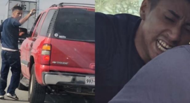 En tanto, al conductor de la camioneta se le observa totalmente desconcertado, mientras que el asaltante al verse descubierto por el grupo de jóvenes, comienza a alzar la voz y presiona al conductor con entregarle sus pertenencias, así como la llave de su camioneta.