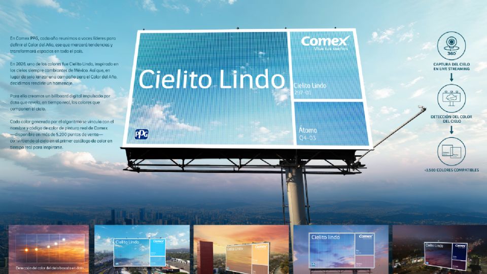 Inspirada en “Cielito Lindo”, uno de los colores del año de Comex, la iniciativa parte de una observación profundamente cultural: el cielo de la Ciudad de México cambia constantemente, generando una paleta infinita que pocas veces se percibe con atención.