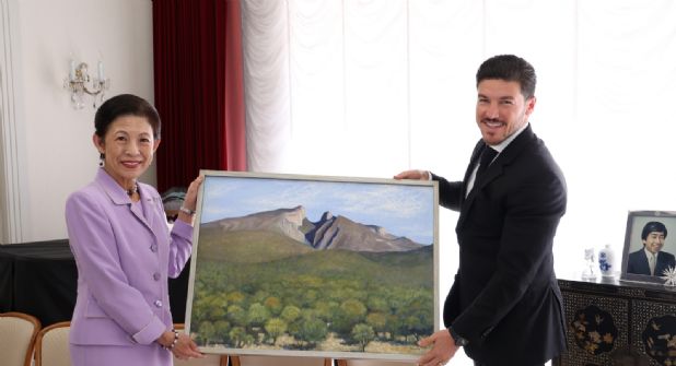 Monterrey.- El gobernador de Nuevo León, Samuel Alejandro García Sepúlveda, sostuvo un encuentro con la princesa de Japón, Hisako de Takamado, en el marco de su gira de trabajo por Asia, con el objetivo de fortalecer las relaciones diplomáticas y promover al estado como destino de inversión para empresas japonesas.