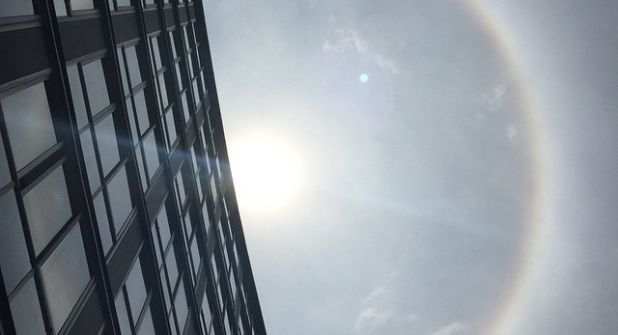 El halo solar inició aproximadamente a las 12:30 de esta tarde, un bello espectáculo que pudieron presenciar los capitalinos.