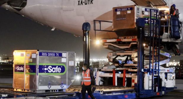 CIUDAD DE MÉXICO.- Durante los primeros minutos del día, un nuevo lote de vacunas contra Covid-19 de la farmacéutica AstraZeneca llegó al Aeropuerto Internacional de la Ciudad de México.