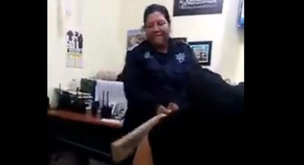 Veracruz. – En el ojo del huracán es donde se encuentra una radio operadora de la Policía Municipal de Perote, Veracruz, quien recientemente fue exhibida golpeando a un detenido con una tabla.