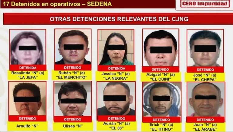 “Lo relevante es que se acumulan un conjunto de detenciones que han venido a mermando la estructura criminal del Cártel Jalisco Nueva Generación”, apuntó Mejía Berdeja.