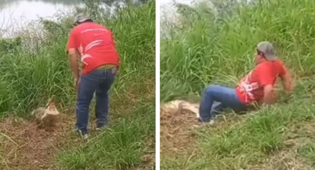 La mordida del cocodrilo fue tal que alcanzó a arrastras varios centímetros a su víctima, quien puso a salvo su extremidad propinándole una patada al ovíparo.