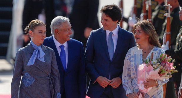 Trudeau y su esposa, Sophie Grégoire Trudeau, llegaron al Palacio Nacional tras desplazarse desde su hotel, ubicado en el acomodado barrio de Polanco de la capital mexicana, hasta la residencia oficial, donde fueron recibidos por López Obrador y su esposa, Beatriz Gutiérrez Müller.