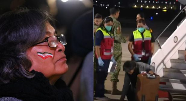 Tras su aterrizaje, la primera en descender de este avión fue una mujer, quien tras recorrer la larga escalera de la aeronave y pasar por un filtro en donde personal de la Secretaría de la Defensa Nacional (Sedena) le revisó su temperatura corporal, la mujer decidió ponerse de rodillas y besar el suelo mexicano.