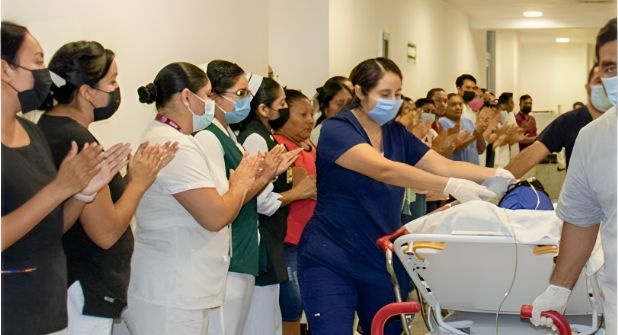Horas antes, fue despedido entre aplausos por médicos, enfermeros y demás personal del Hospital Infantil Federico Gómez, en la colonia Doctores de la Ciudad de México.