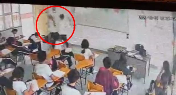 La agresión quedó grabada por las cámaras de seguridad que se encuentran instaladas dentro del aula en donde se encontraba impartiendo clases la docente de la materia de español.