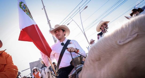 Guadalajara.- Con botas y sombrero, el precandidato de Movimiento Ciudadano a la presidencia de la república, Samuel García Sepúlveda, arrancó su gira por tierras Jaliscienses con una cabalgata.