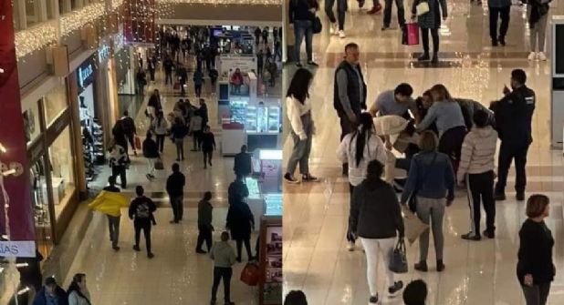 La pelea se registró el pasado miércoles 20 de diciembre en los pasillos en Galería Metepec. Las dos mujeres protagonizaron un zafarrancho y terminaron en el suelo, mientras que el sujeto responsable del pleito, solo se quedó viendo la escena.