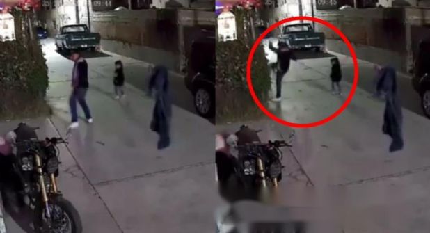 Posterior, da unos cuantos pasos más, ve a otro perrito y lo comienza a patear frente a la niña de aproximadamente seis años que lo acompañaba, quien se quedó asustada al ver al sujeto golpear a los caninos, incluso uno de ellos salió corriendo tras ser agredido.