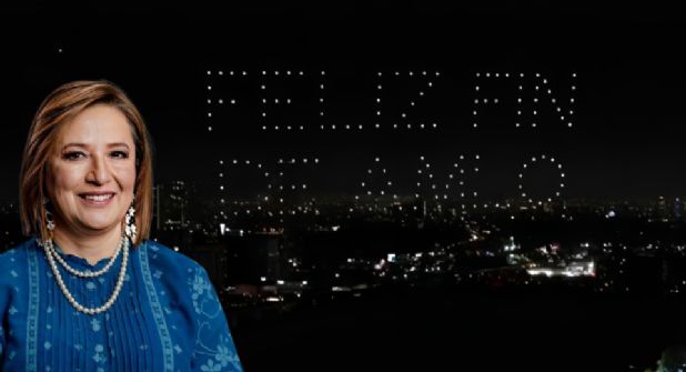 Ciudad de México. – La precandidata de Frente Amplio por México , Xóchitl Gálvez, encabezó un show de drones en los cielos de la Ciudad de México para desear un feliz fin del presidente, Andrés Manuel López Obrador.
