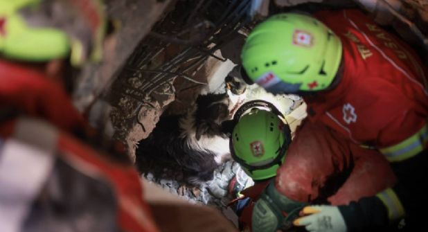 Turquía.- Balam, uno de los perritos enviados a Turquía por el Gobierno mexicano para ayudar en las labores de rescate tras el sismo que afectó esta región encontró entre los escombros a una persona con vida y fue pieza clave en su rescate.