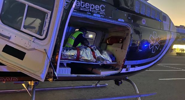 La víctima fue trasladada por tierra hasta el estacionamiento de una plaza comercial, donde aterrizó un helicóptero que la trasladó hasta el hospital 20 de Noviembre, ubicado en la Ciudad de México.