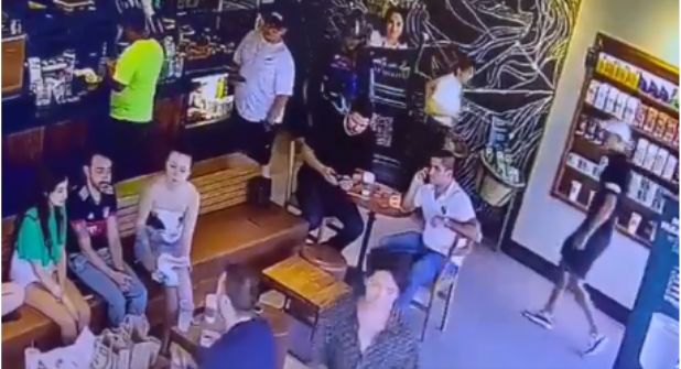 En la grabación se observa el momento en que dos asaltantes se acercan a la mesa donde estaba David y su acompañante y segundos después comienzan los disparos.