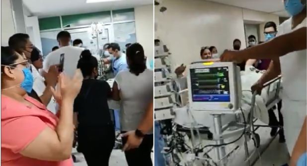 Personal del UMAE No. 71 del Instituto Mexicano del Seguro Social, despidió entre aplausos a la pequeña Victoria.