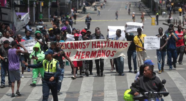 Una veintena de haitianos, en su mayoría hombres, se manifestaron desde la plaza Giordano Bruno, en la colonia Juárez, donde cientos dormitan desde hace meses, hasta las oficinas del Gobierno de Ciudad de México, en el Zócalo capitalino.