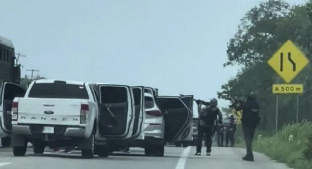 En un video publicado en redes sociales se puede ver como un grupo de sujetos armados y que viajaban en distintos vehículos apunta con armas de fuego a un autobús donde se trasladaban los trabajadores de la SSyPC.