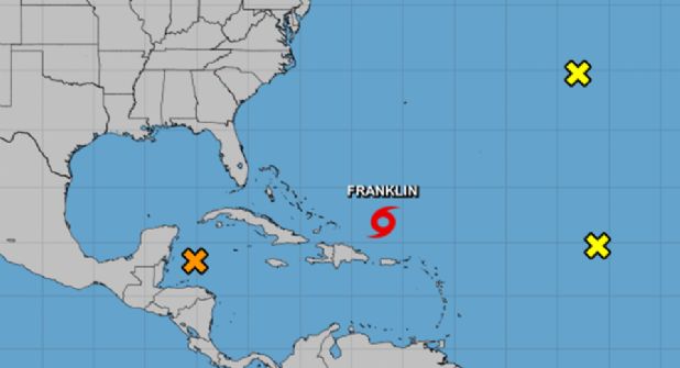 Los pronósticos indican que entre mañana sábado 26 y el domingo 27 de agosto, la tormenta tropical Franklin pase a convertirse a huracán categoría 1.