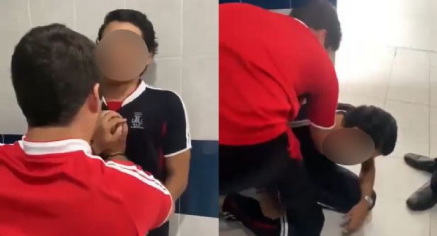 En la grabación se observa que uno de los alumnos del Centro Universitario Montejo (CUM), hace presión con sus dos manos en el pecho de uno de sus compañeros de clase, el cual se encontraba recargado en una pared, y al ser asfixiado intencionalmente, cae desmayado al suelo.